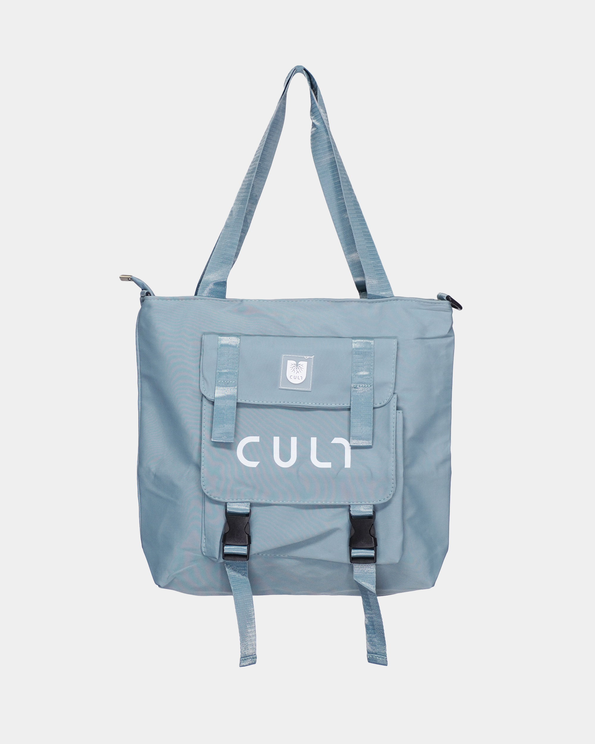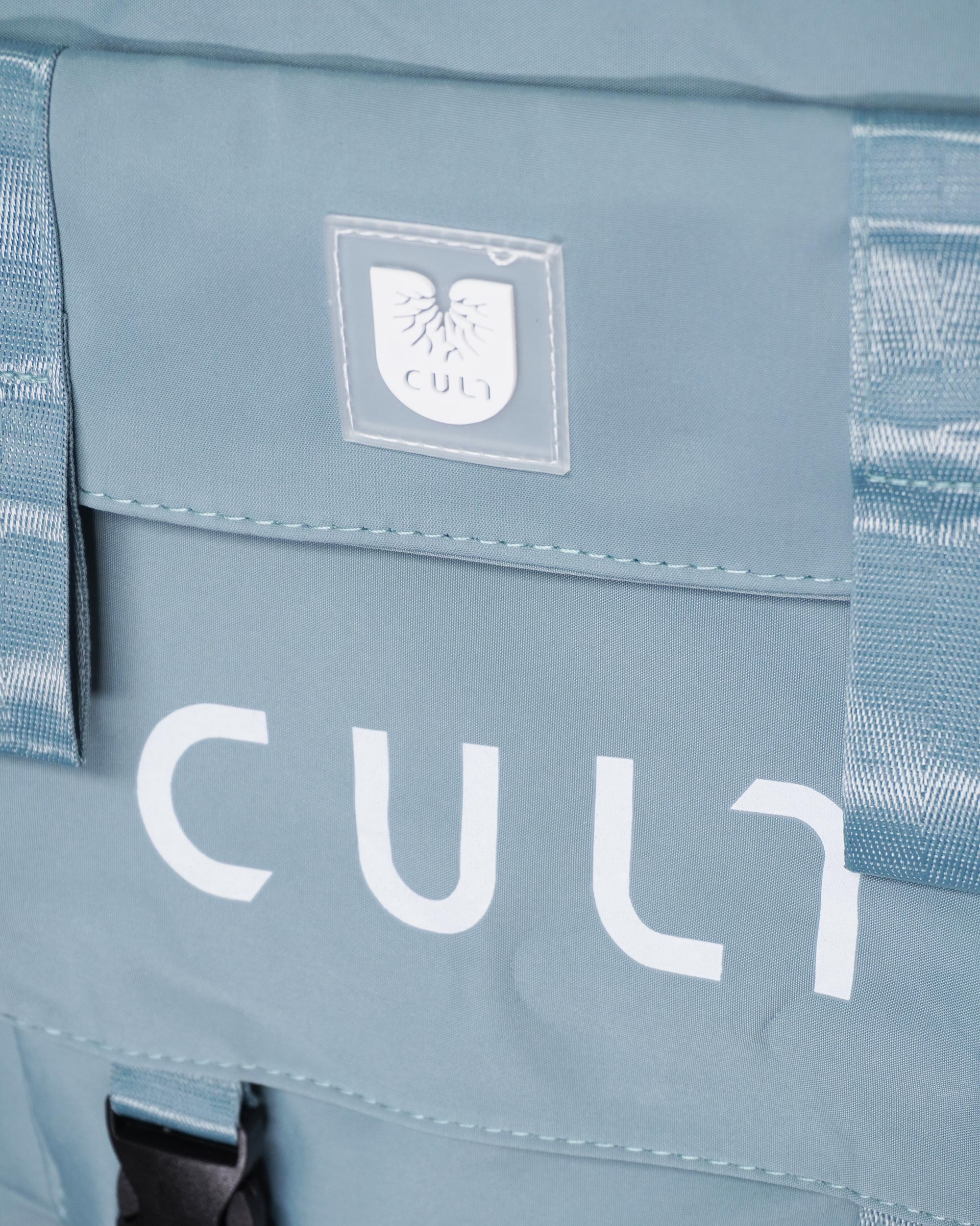 Основной отдел на молнии. Внутри фирменная подкладочная ткань и кармашек для мелочей. Спереди карман с логотипом CULT на застежках фастекс. Две ручки для ношения, в комплекте идет съёмный плечевой ремень, регулируется по длине от 60 до 120 см. Размеры: 37х37х10 см.