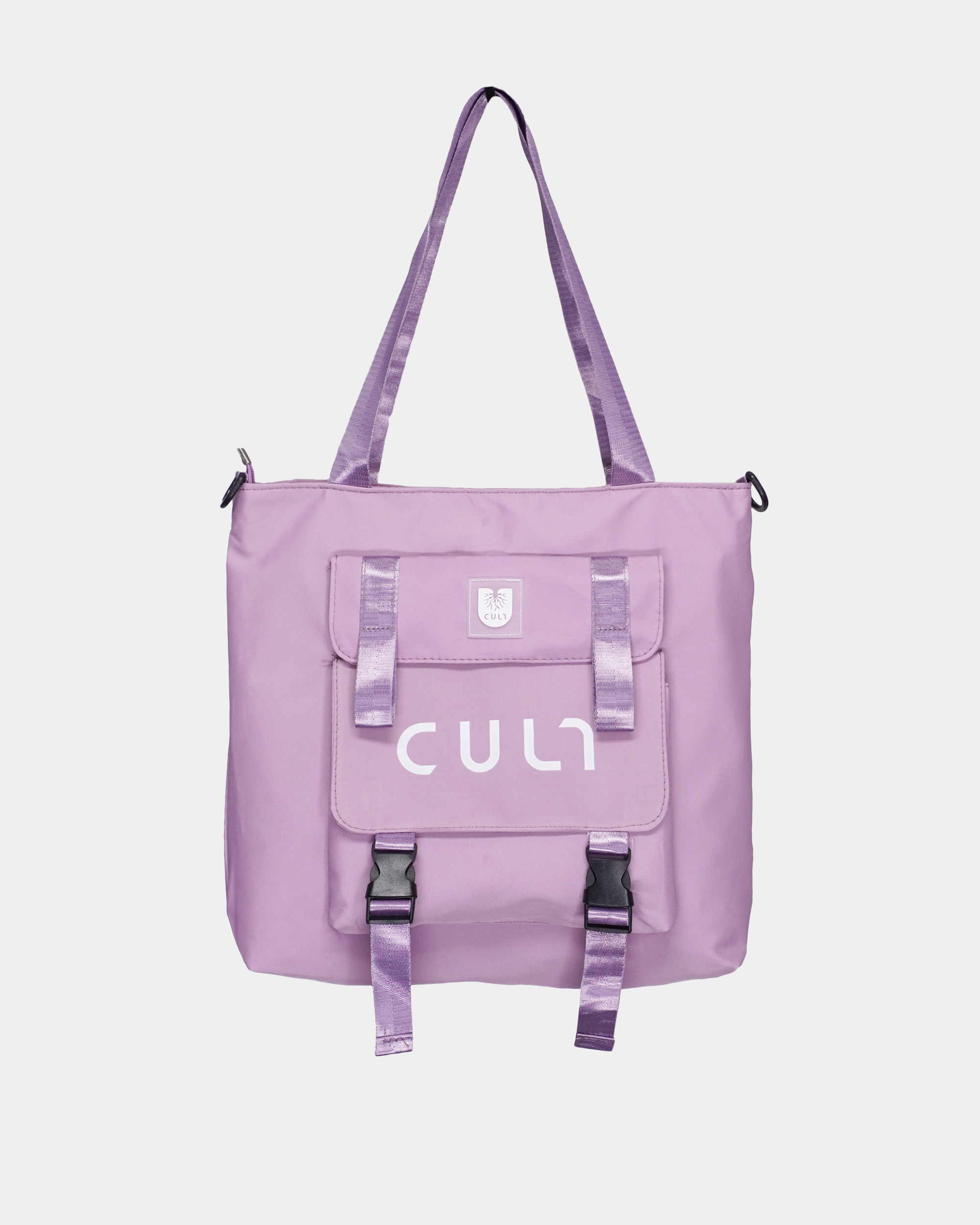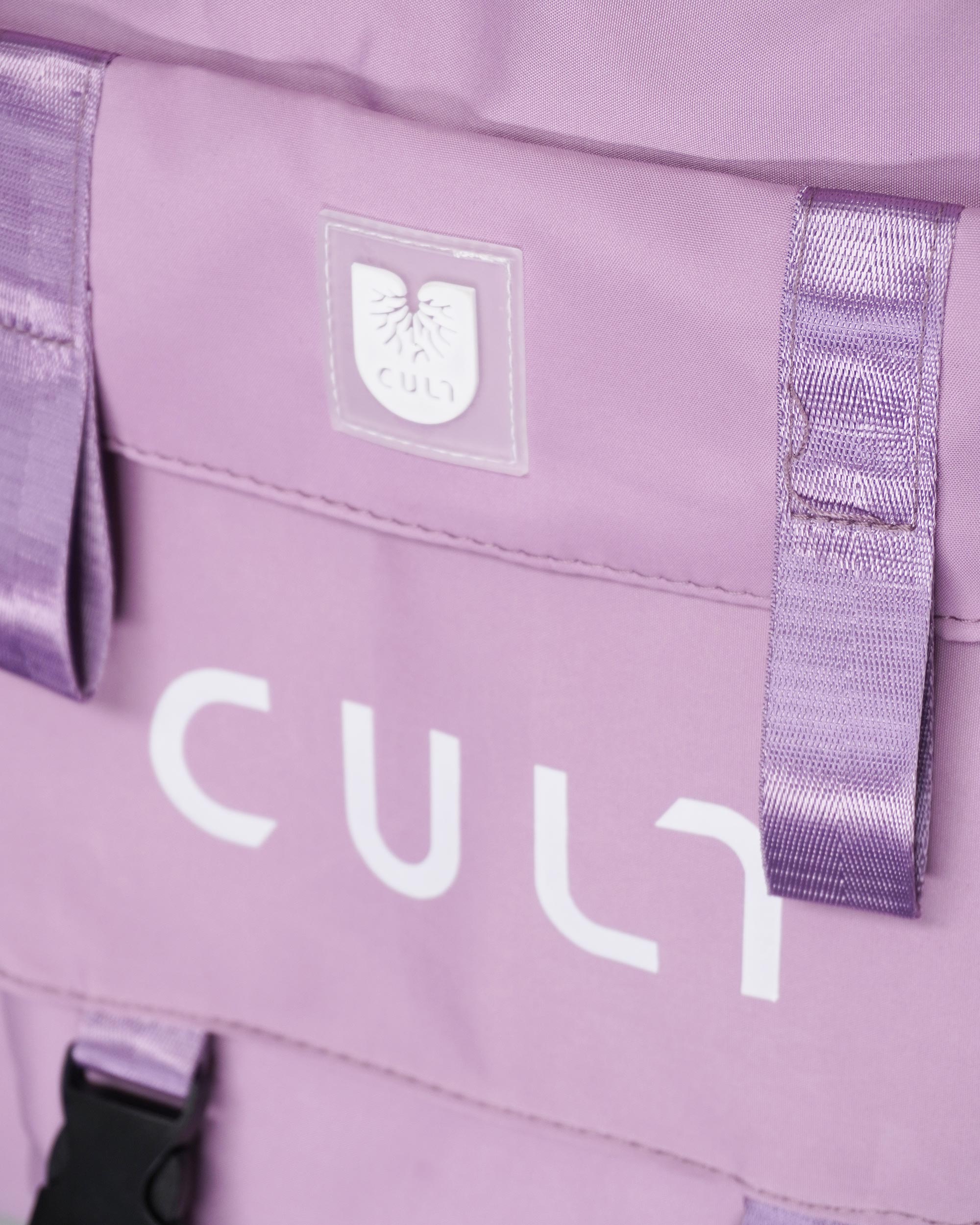 Основной отдел на молнии. Внутри фирменная подкладочная ткань и кармашек для мелочей. Спереди карман с логотипом CULT на застежках фастекс. Две ручки для ношения, в комплекте идет съёмный плечевой ремень, регулируется по длине от 60 до 120 см. Размеры: 37х37х10 см.